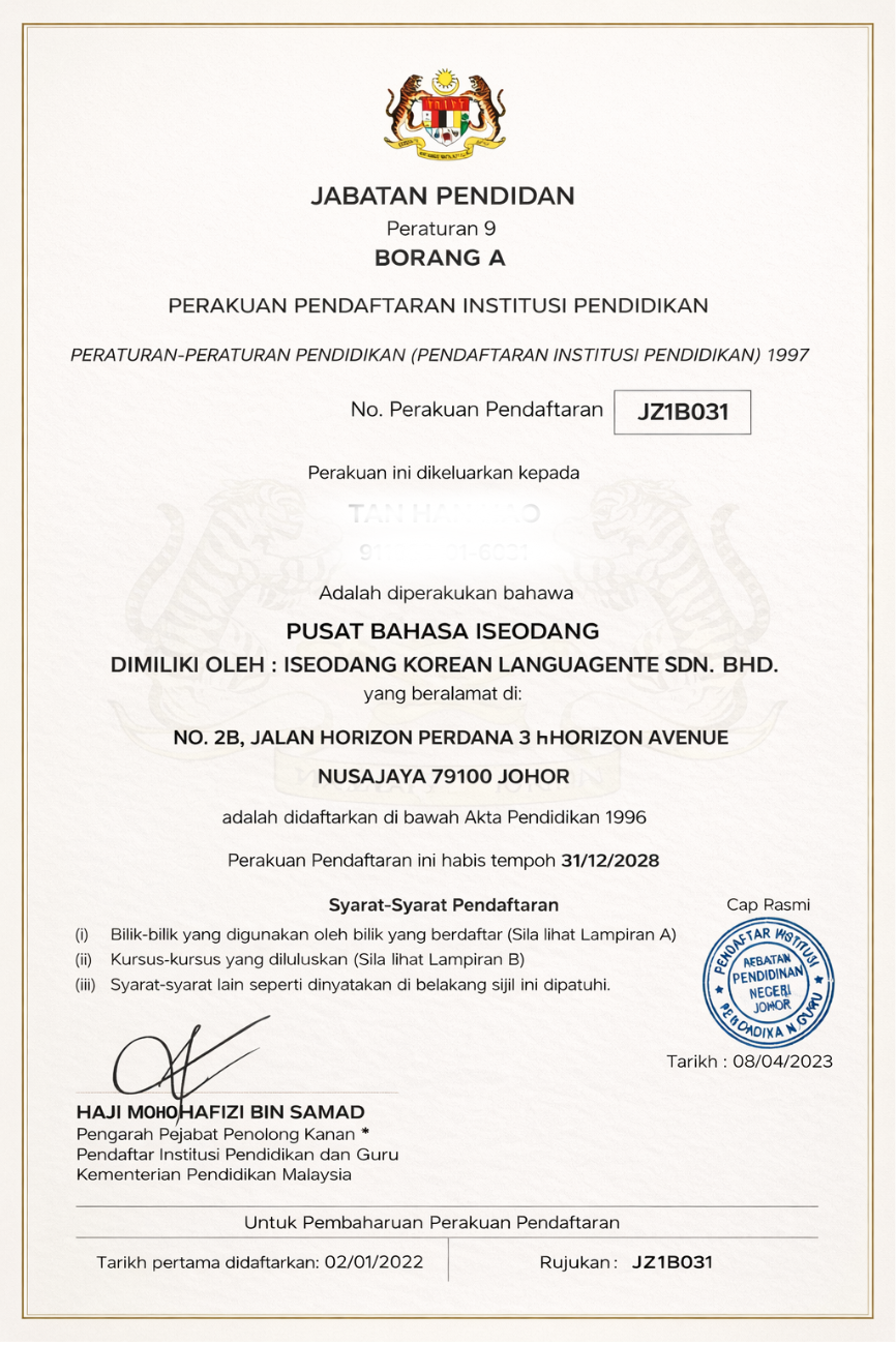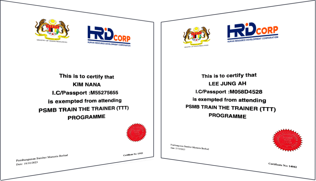 Certificate Ministry of Education (MOE) Kementerian Dalam Negeri (KDN) HRD Corp Certified Training Provider